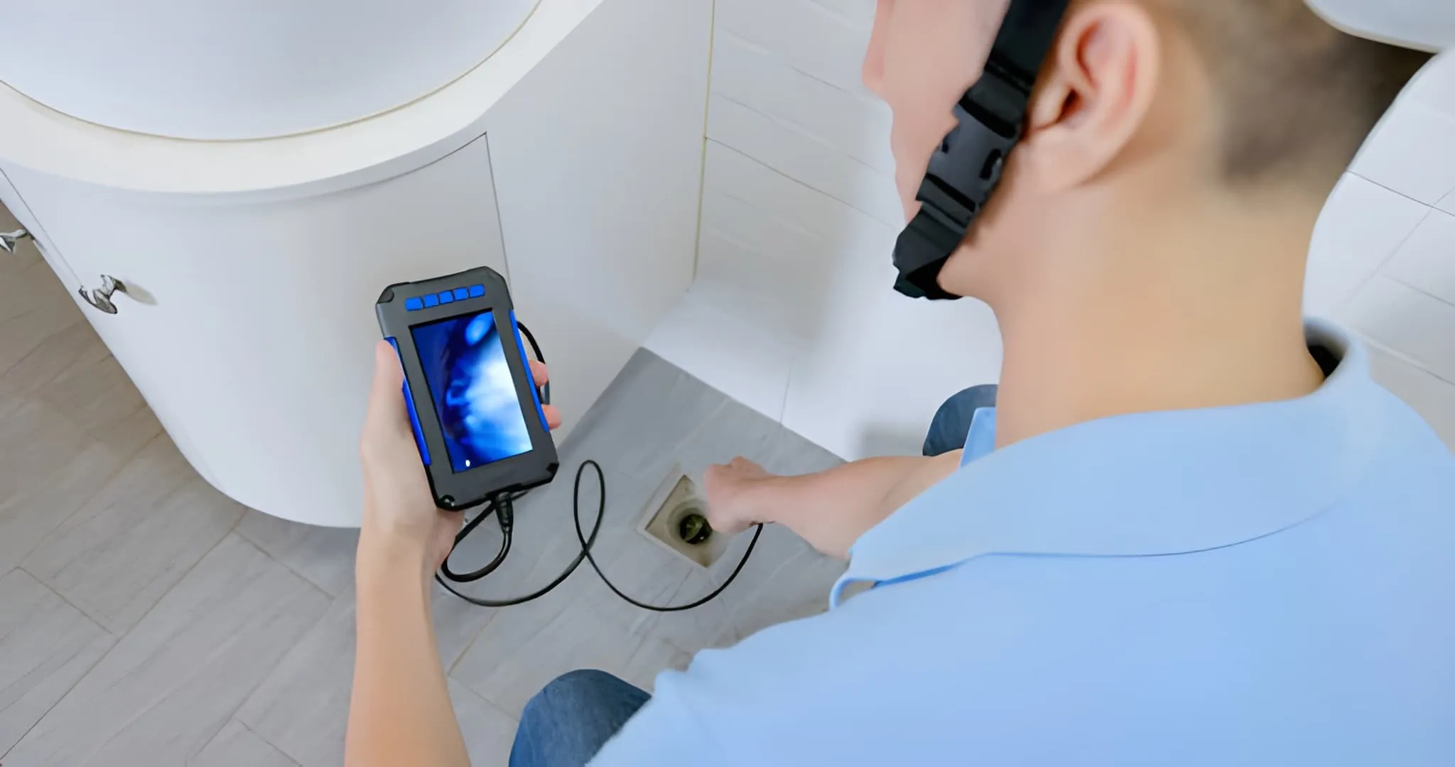 A specialized waterproof camera is inserted into the drain line and guided through the plumbing system. The camera transmits a live video feed that allows technicians to view the interior of the pipes in real time. This technology helps identify blockages, pipe damage, buildup, and other conditions that may be affecting water flow.